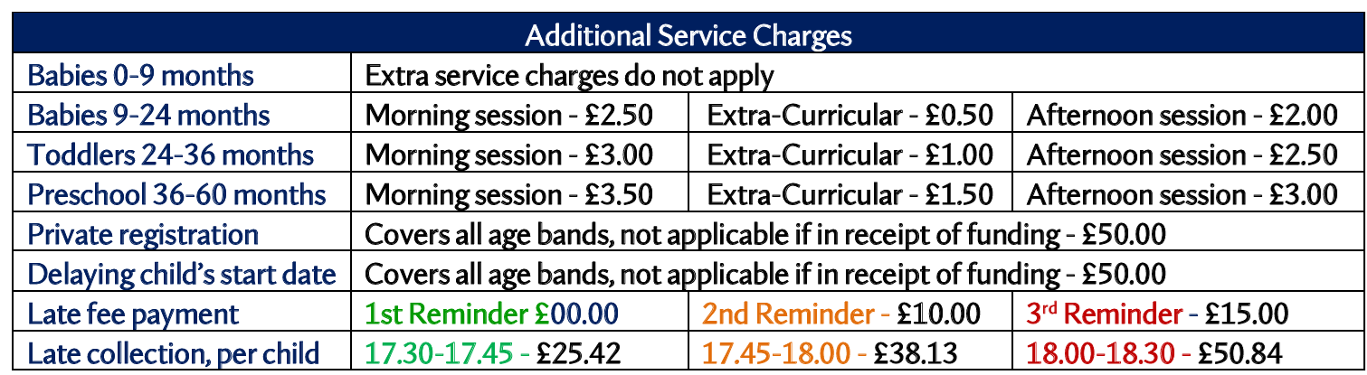 Below is an example of our typical prices for non-funded children aged 3-5 years.